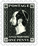 Terry and Bernard Pearson — who owns “The Cunning Artificer“, a shop that sells limited edition Discworld artifacts — designed the stamps for Terry's novel and you can take a closer look at their stamp creations below. You'll learn more about the stamps and the Ankh Morpork Post Office when you read Going Postal. . .
